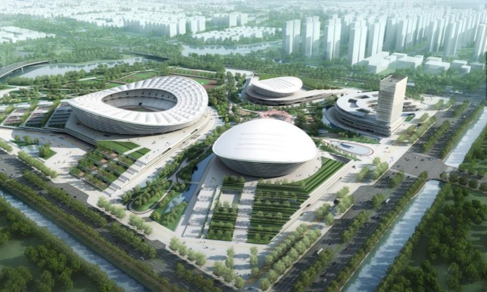 苏州工业园区体育中心位于金鸡湖东核心区,北部毗邻商业文化区、湖东核心区,南部隔斜塘河与斜塘片区中心相邻。项目规划总面积近60公顷,总建筑面积约35.28万平方米,总投资将近48亿,可容纳观众8万人,包含一场、两馆、一中心是集体育竞技、休闲健身、商业娱乐、文艺演出于一体的多功能、综合性的甲级体育中心,可以举办全国综合X会和国际单项体育赛事,项目预计在2017年建成。