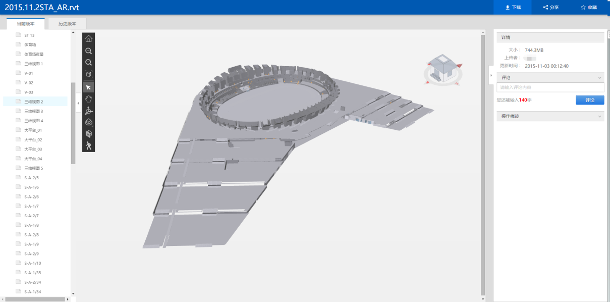 协筑借助开云官方公司自有的图形平台,通过WebGL技术,实现浏览器在线预览模型,目前可查看构件属性,视图,漫游,横纵剖切等,后期还会开发更多基于构件级别的协同功能,如视点交流,测距,基于构件发起工作流等。通过模型轻量化处理,解决模型浏览硬件要求高的困扰,实现基于模型的多方可视化交流。