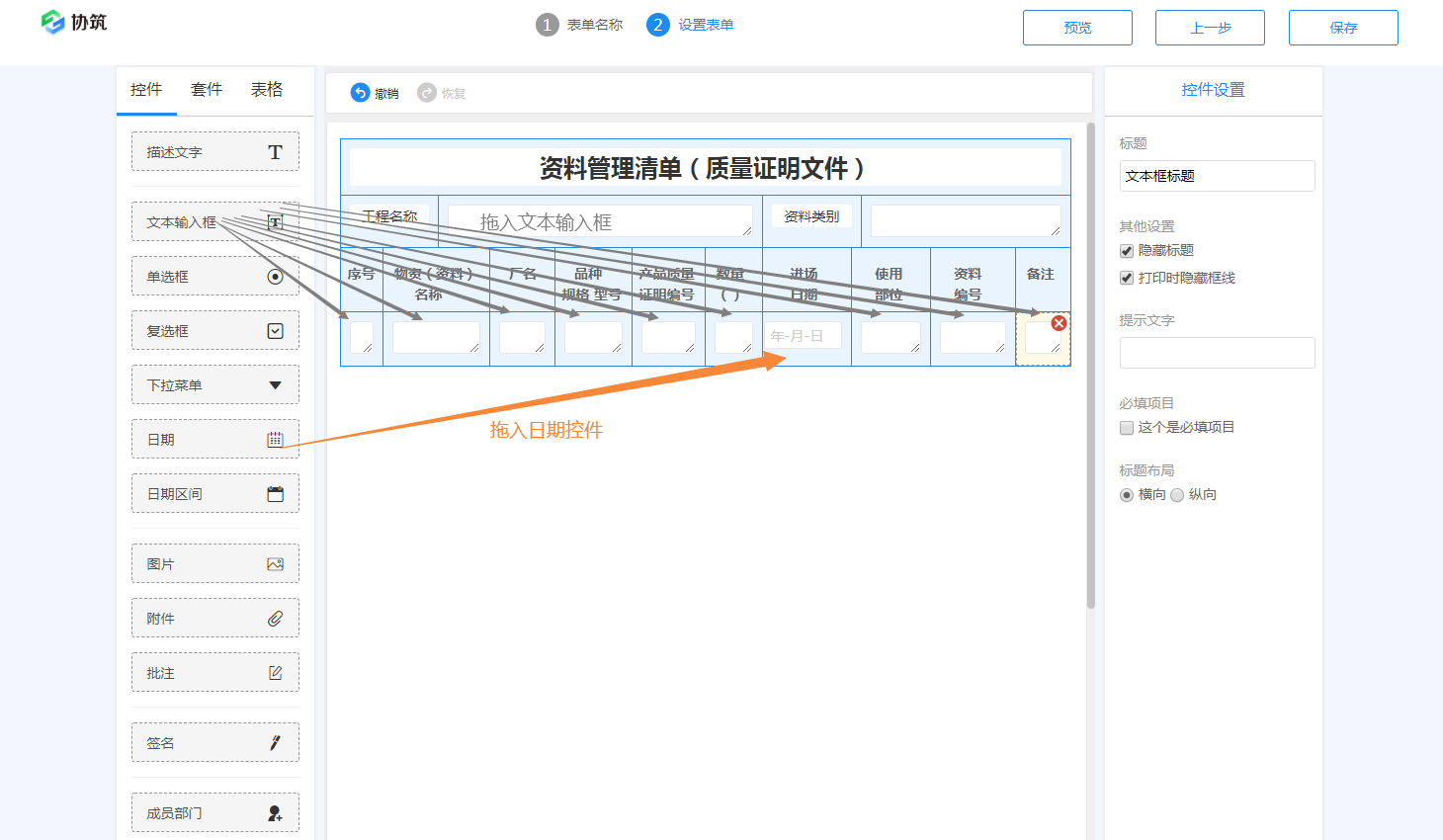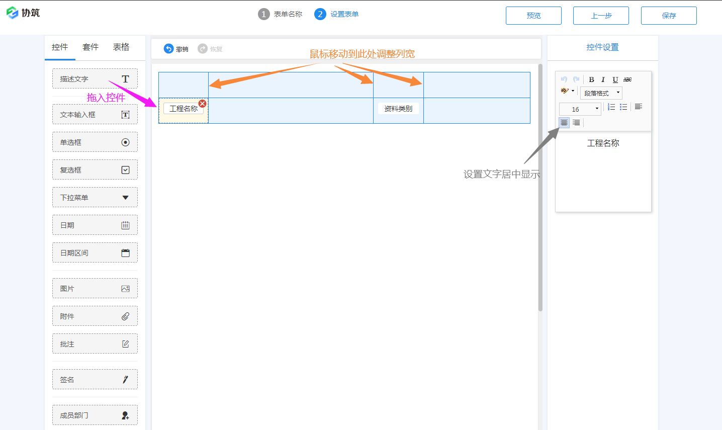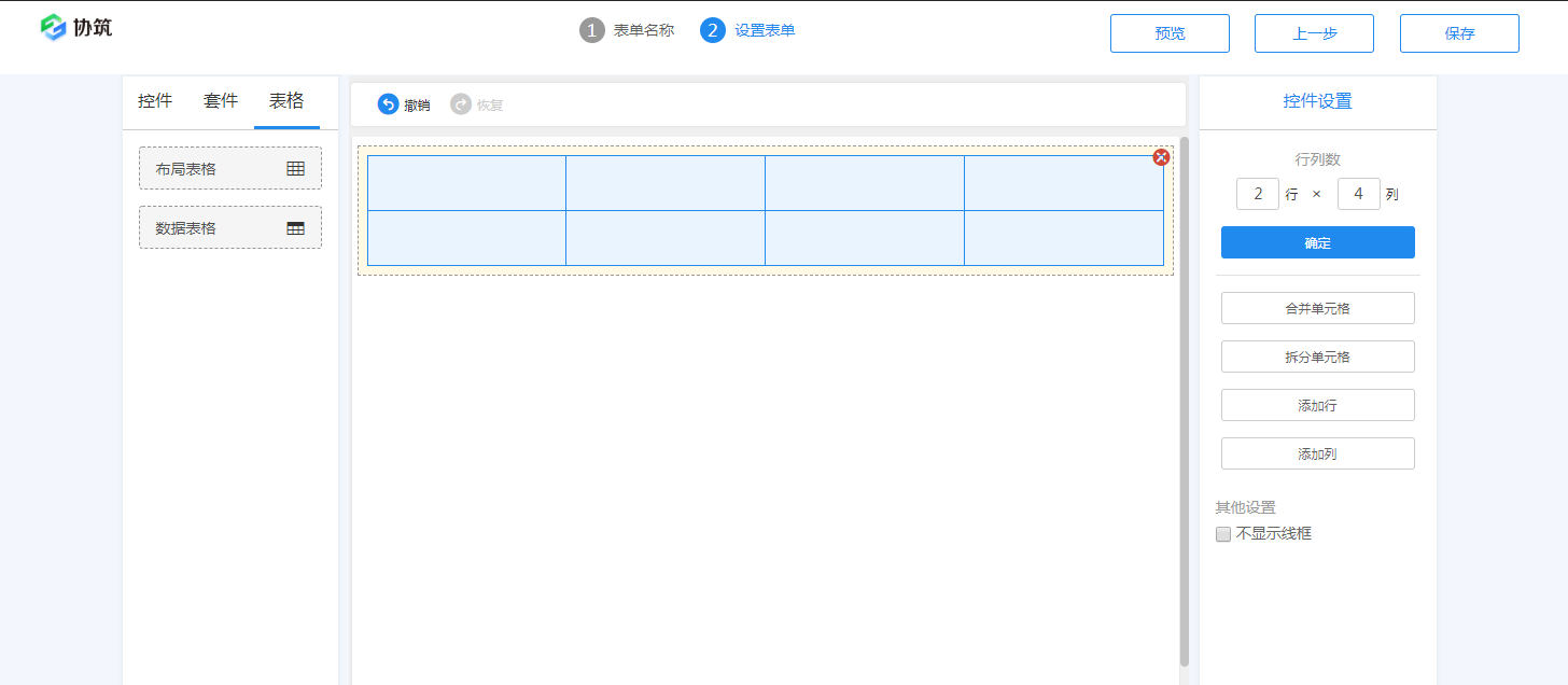 注:在绘制表单时,数据表格默认只有一行列头和一行内容输入行,在发起表单流程后,可根据需要,新增内容输入行。