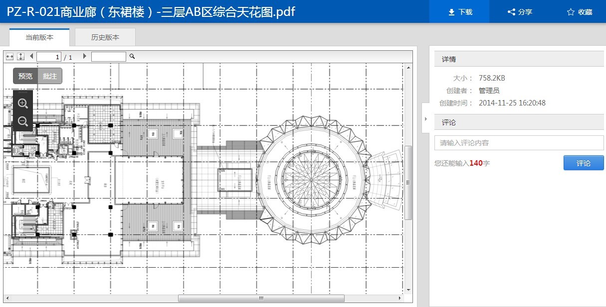 项目部通过广联云构建了一个文档管理的云平台,通过这个云平台实现了图文档从创建→修改→版本控制→审批程序→发布→存储→查询→反复使用→ 终止使用,整个生命周期的管理,并实现工作流与图文档管理无缝结合。项目团队将工程文档同步保存至云端,通过电脑、ipad及手机等终端进行随时随地的访问,并通过精细的权限控制及多种协作功能,确保工程文档能够快速、安全、便捷、受控地在团队中流通和共享。