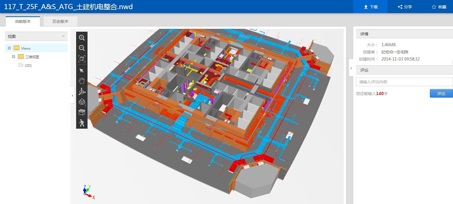 2014年,我们开始应用广联云作为项目的综合管理平台,主要用于中建三局总包内部及各专业分包在项目实施的全过程,全部信息、资料、文档的综合管理,包含但不限于图纸、BIM模型、施工记录、变更洽商记录、过程文件、会议文件、试验检验文件、施工组织文件、竣工资料等。