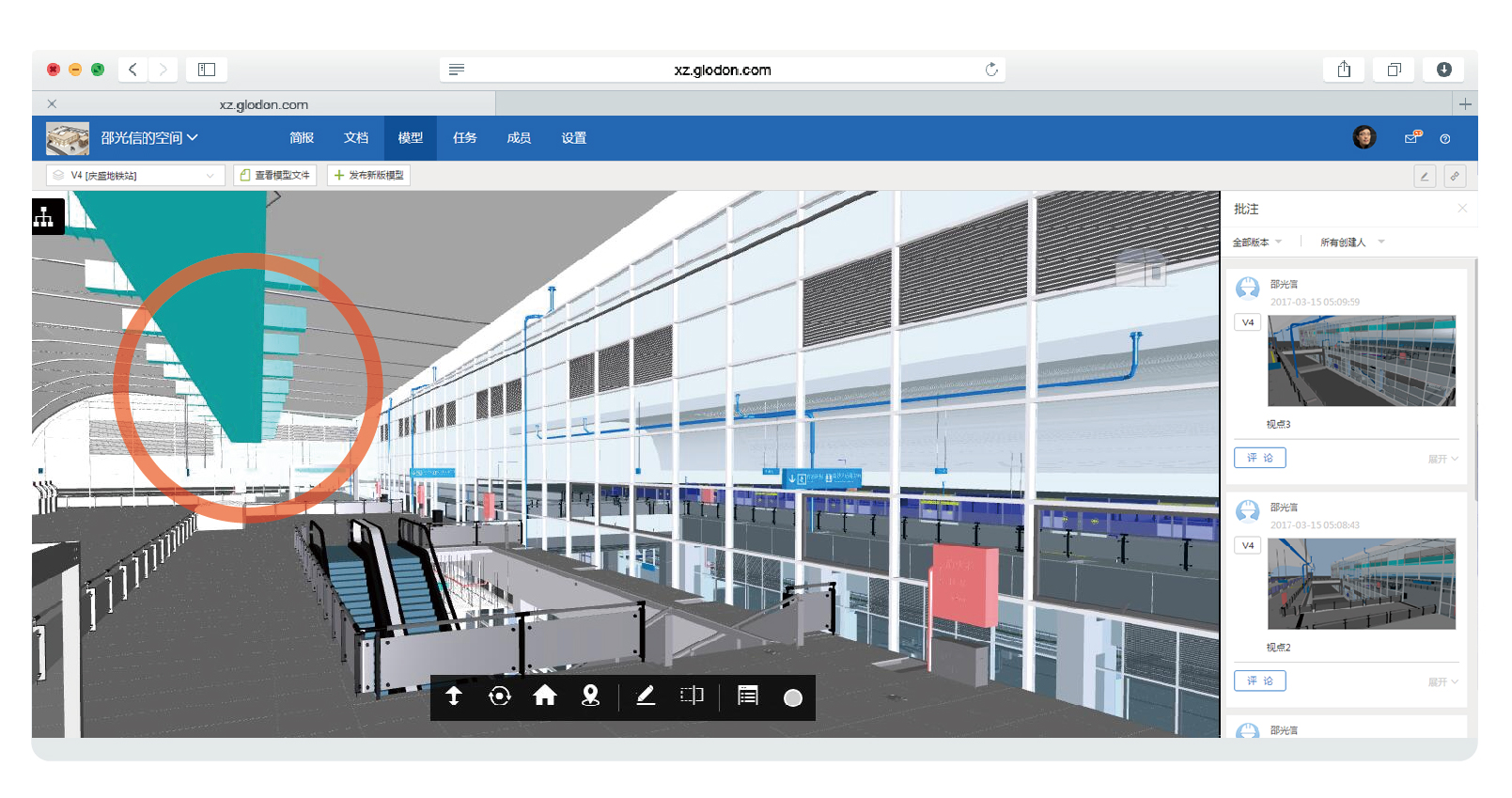 除了可以进行文档任务等工作协同,作为工程行业专属的协同平台,协筑也一直走在行业的最前端,这两年当行业内的所有人都开始讨论“BIM”项技术时,协筑也将这一数字技术加入到自身平台上。长期以来,我们谈BIM、做BIM、用BIM,但是在现有的很多办公环境中,它并不像word文档一样,种种限制性的条件让BIM变得触不可及。如今通过协筑平台,让BIM真正从浮夸走向了理性,BIM模型可一键分享至微信等社交平台,移动端可通过扫描二维码直接在线打开模型文件,并且进行旋转、剖切、隔离等操作。这对于项目管理者来说,在项目实施效果方面无疑起到了至关重要的助推作用。
